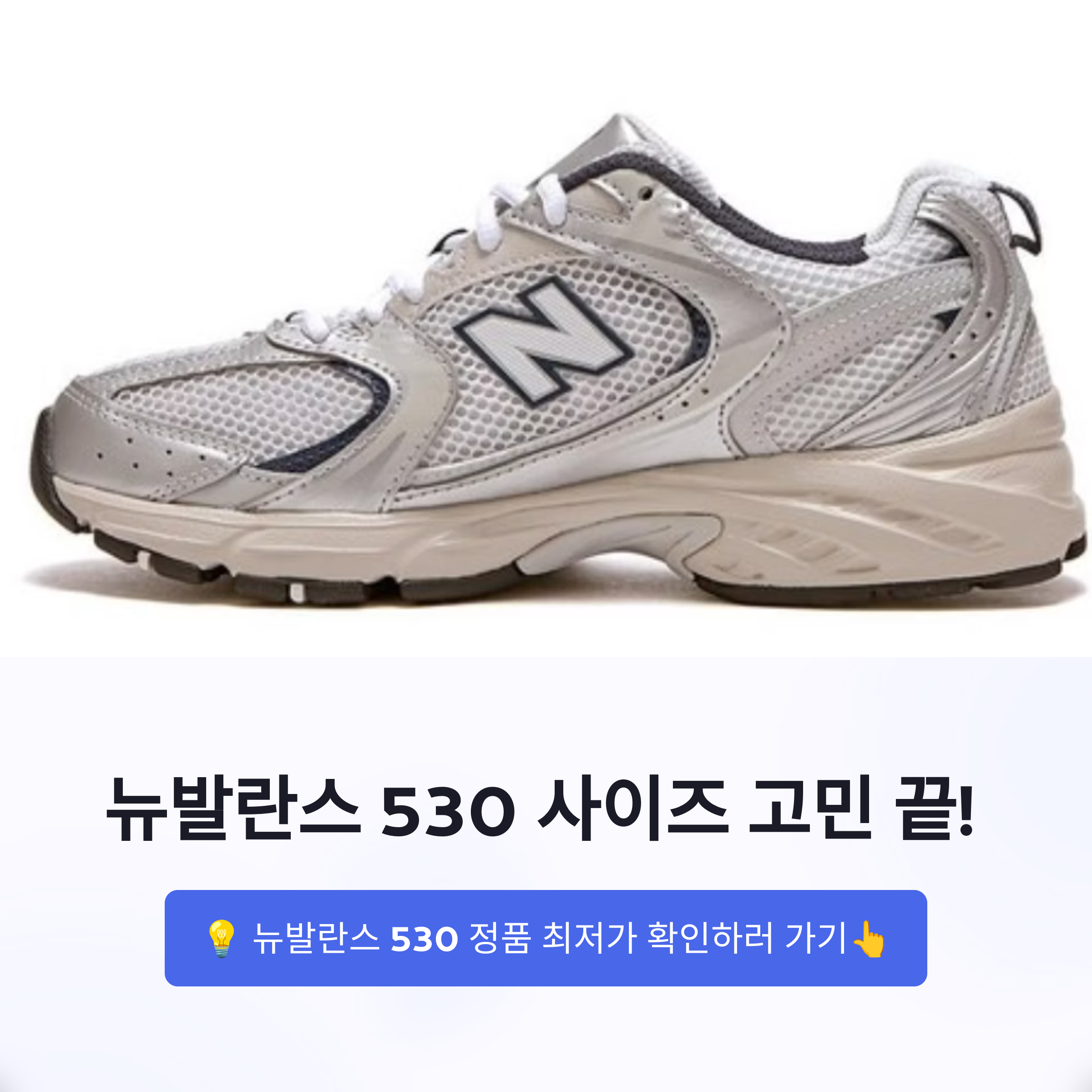 뉴발란스 530은 일반적으로 정사이즈 추천이 많습니다.