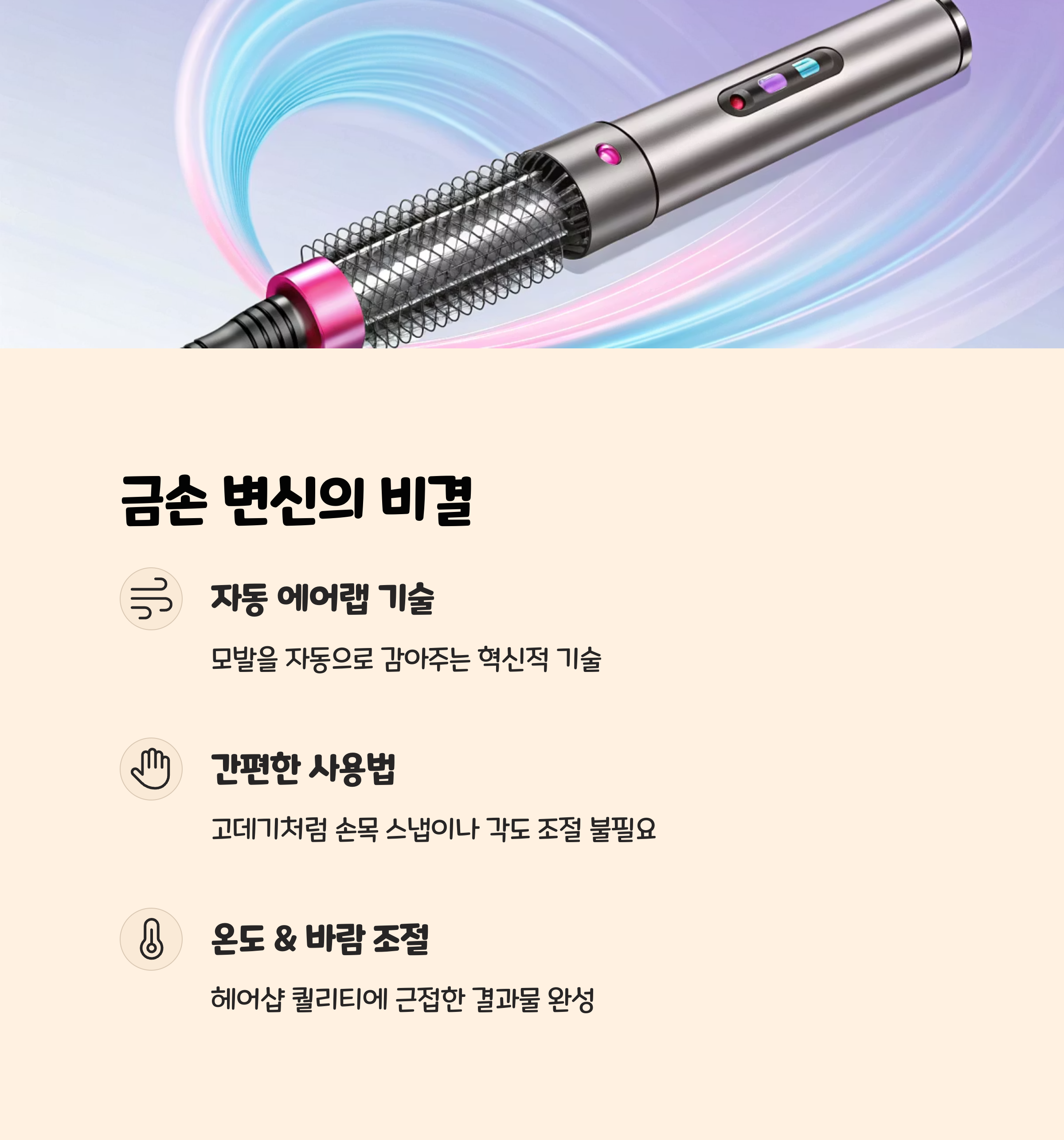 에어가 알아서 머리를 말아주니 손이 자유롭고 편안했습니다.