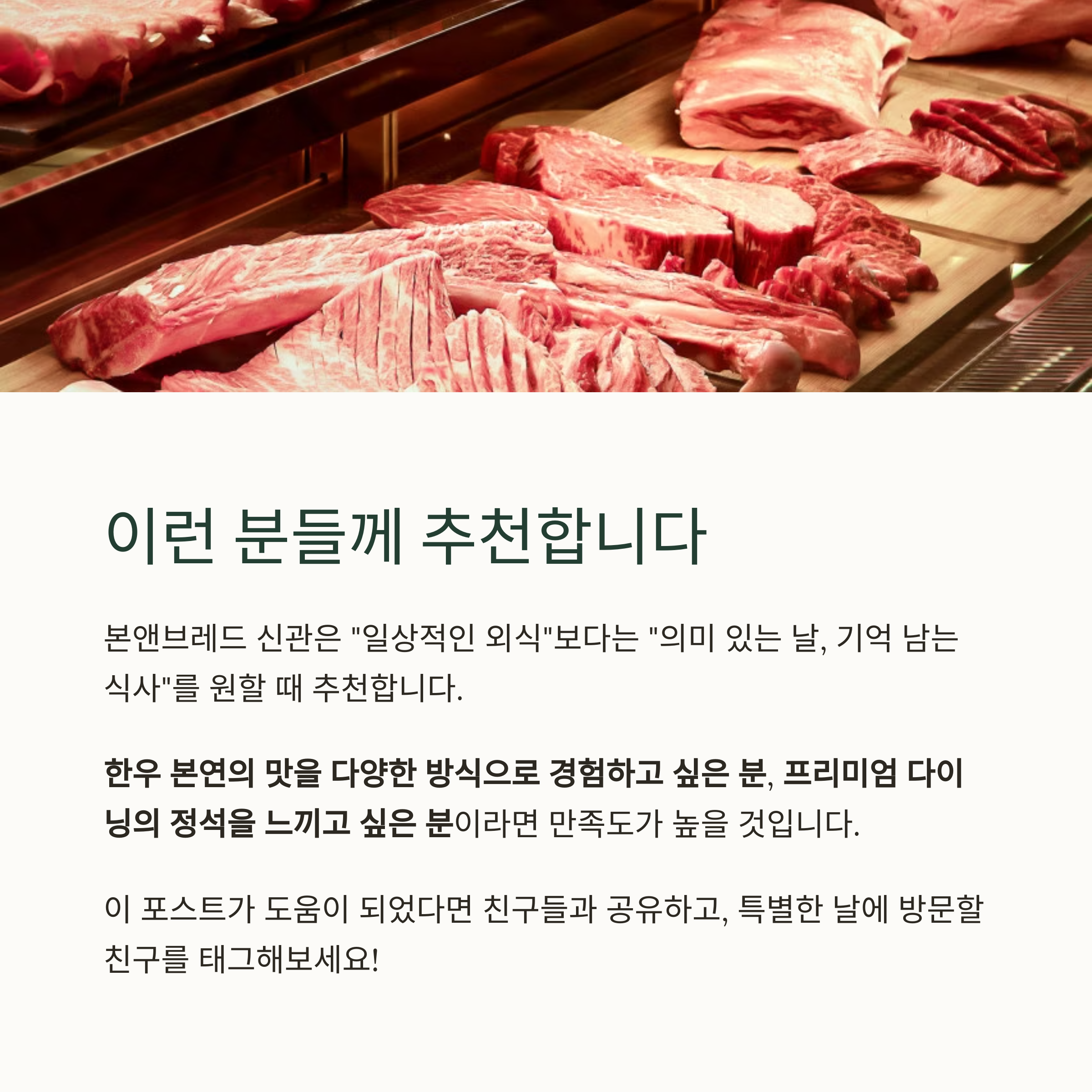 서울 성수동의 대표적인 미식 명소로 떠오른 본앤브레드 신관은 한우 오마카세의 진수를 보여주는 곳으로 유명합니다.