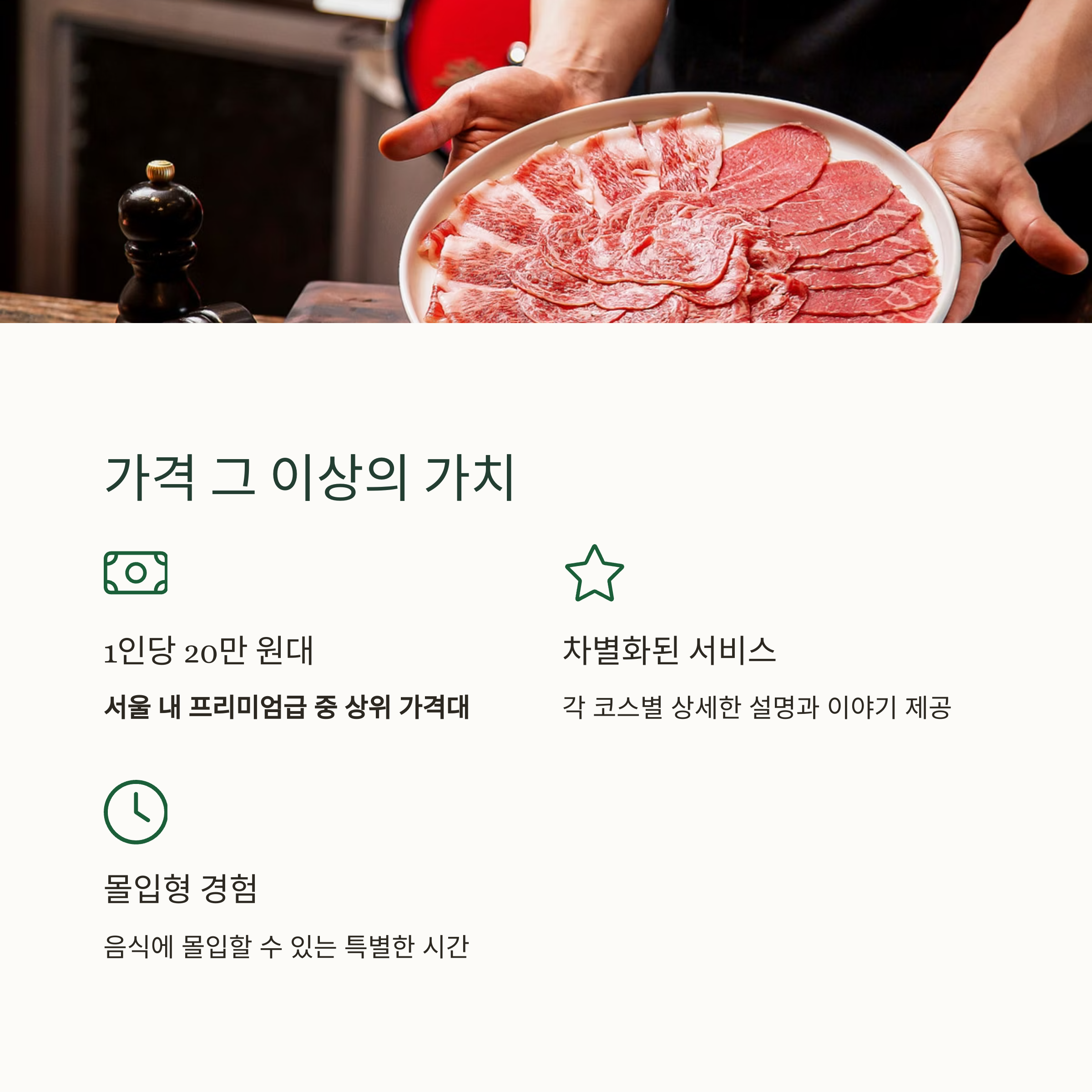 단일 한우 오마카세 기준으로 보면 서울 내 프리미엄급 중 상위 가격대에 해당합니다.