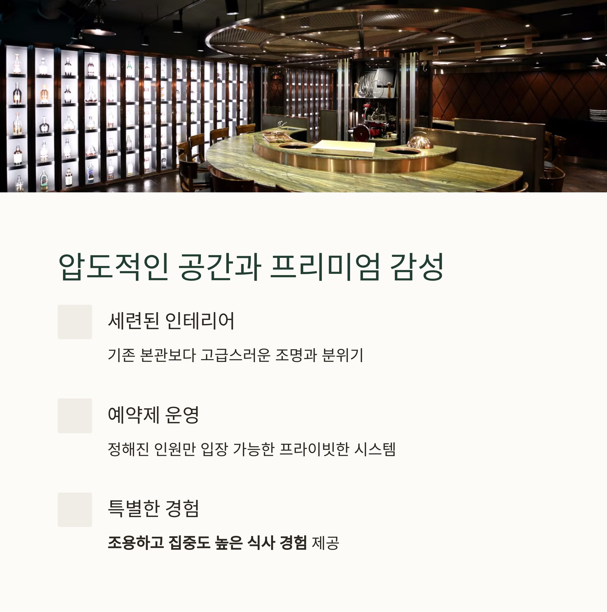 기존 본관보다 세련된 인테리어와 조명이 고급스럽고,