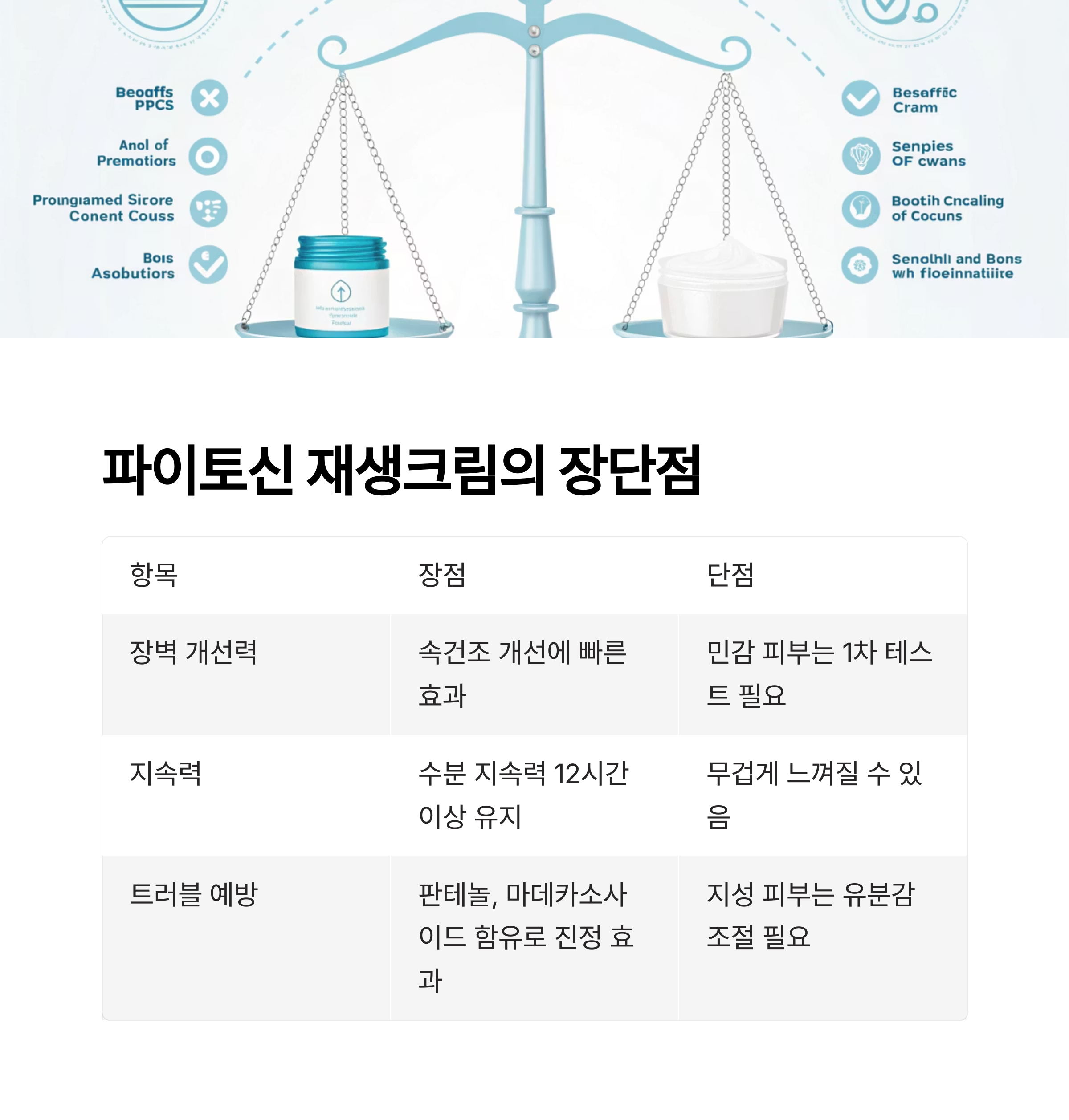속건조는 겉보습이 아니라 장벽 복원과 속보습을 동시에 관리해야 개선됩니다. 파이토신 재생크림은 그 조건을 충족하는 핵심 제품으로, 특히 속건조로 인한 각질, 당김, 예민함이 반복되는 경우 가장 효과적인 대안으로 평가할 수 있습니다.