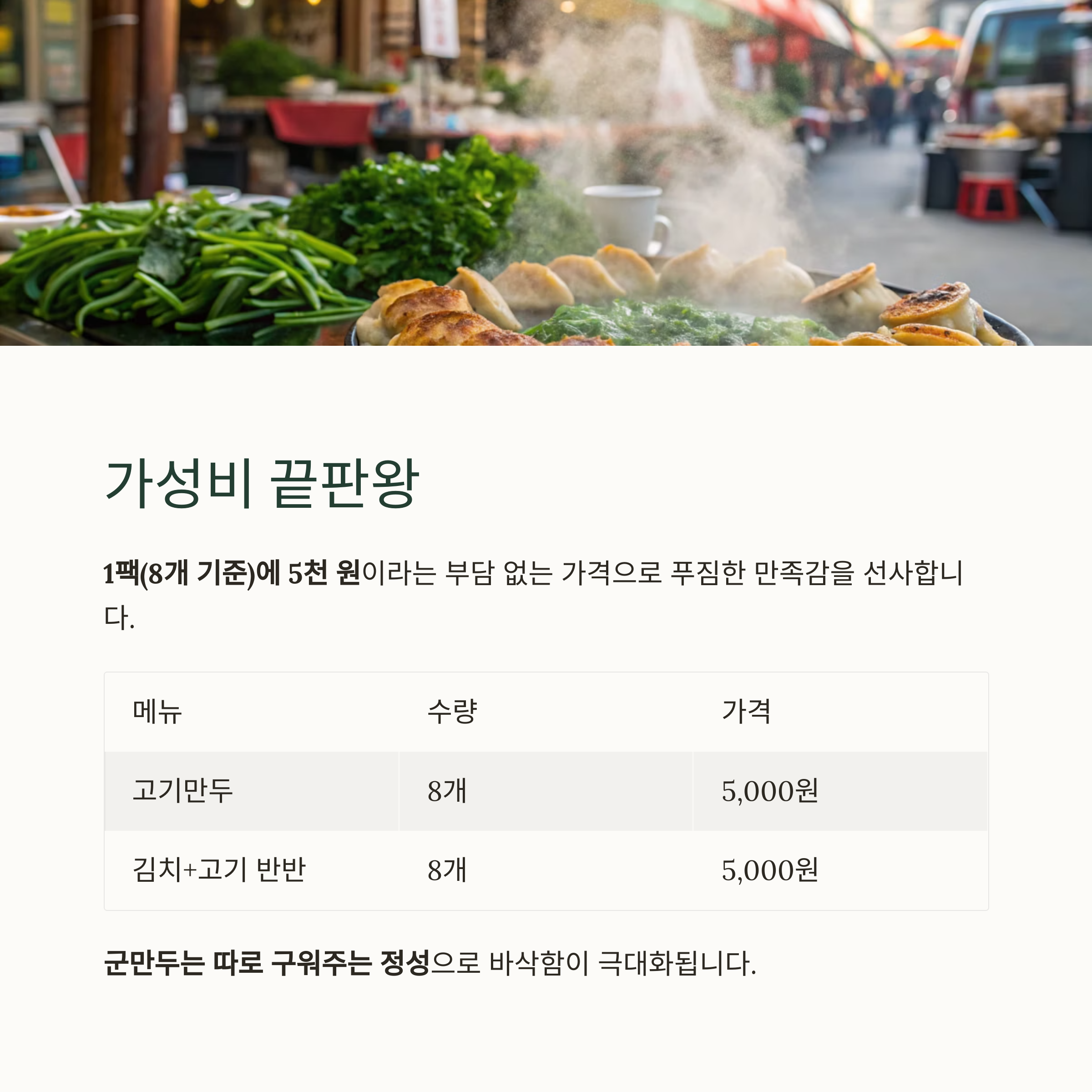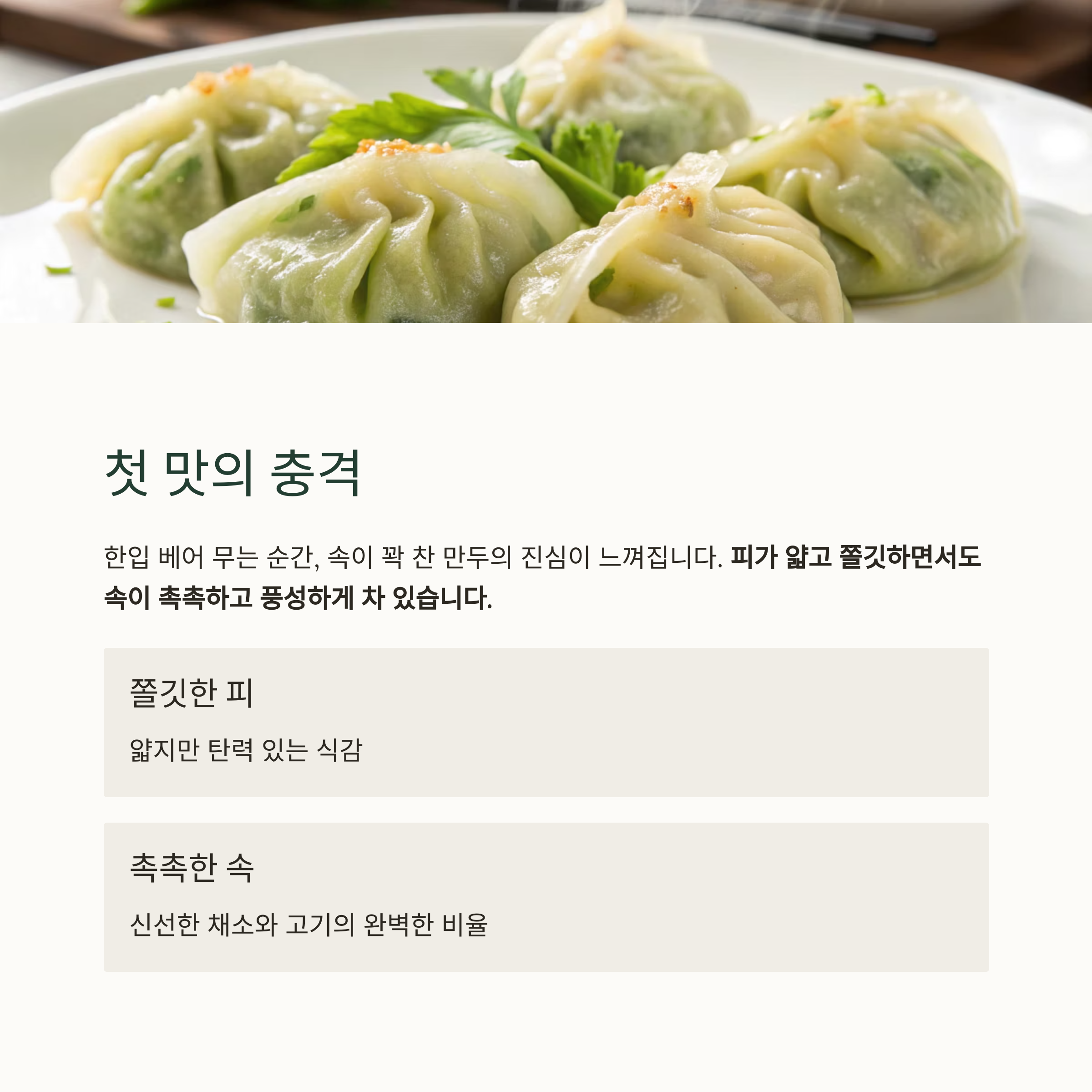 한입 베어 무는 순간, 속이 꽉 찬 만두의 진심이 느껴졌습니다.