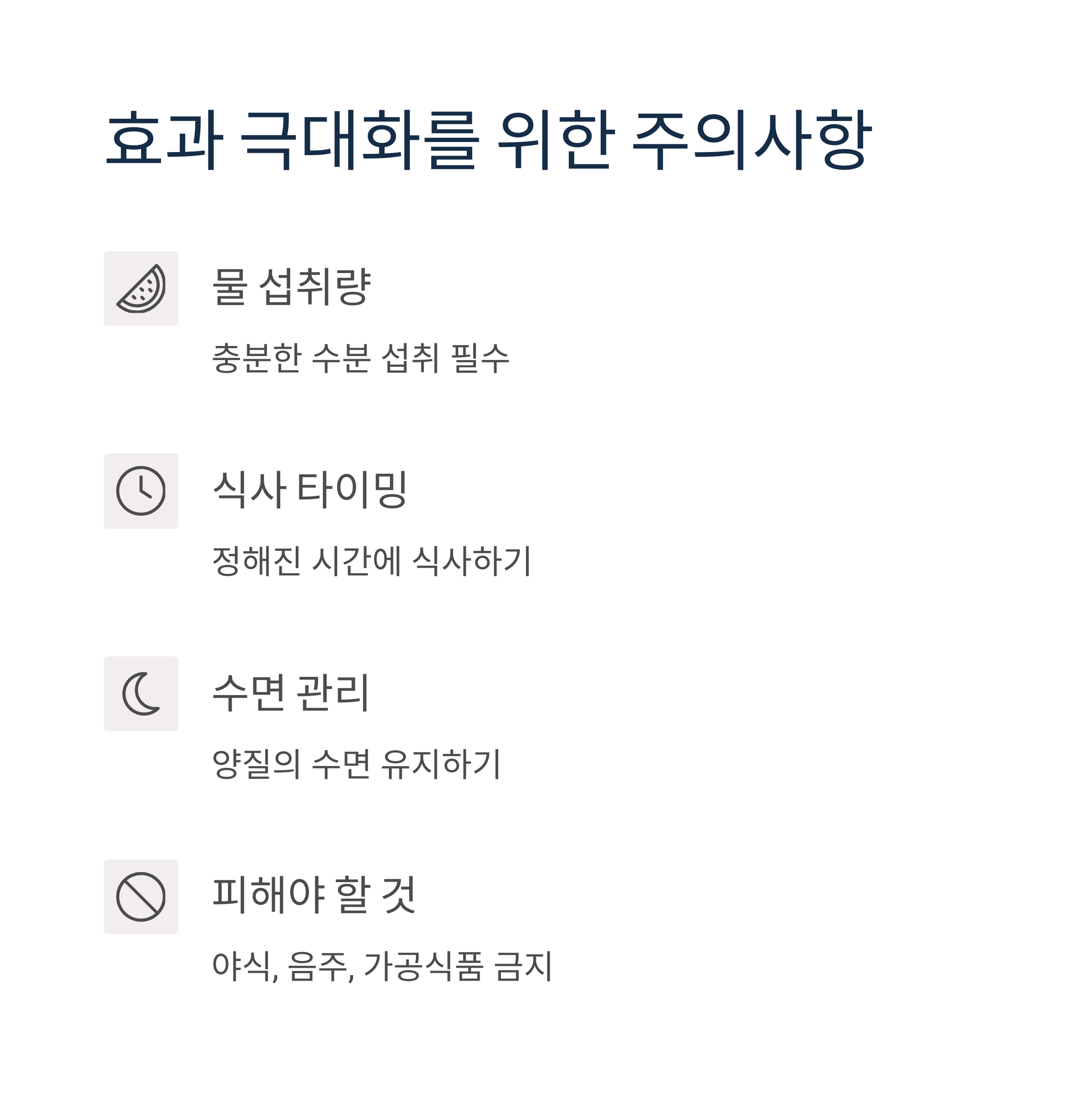 물 섭취량, 식사 타이밍, 수면 관리까지 꼼꼼히 지켜야 효과가 극대화됩니다.