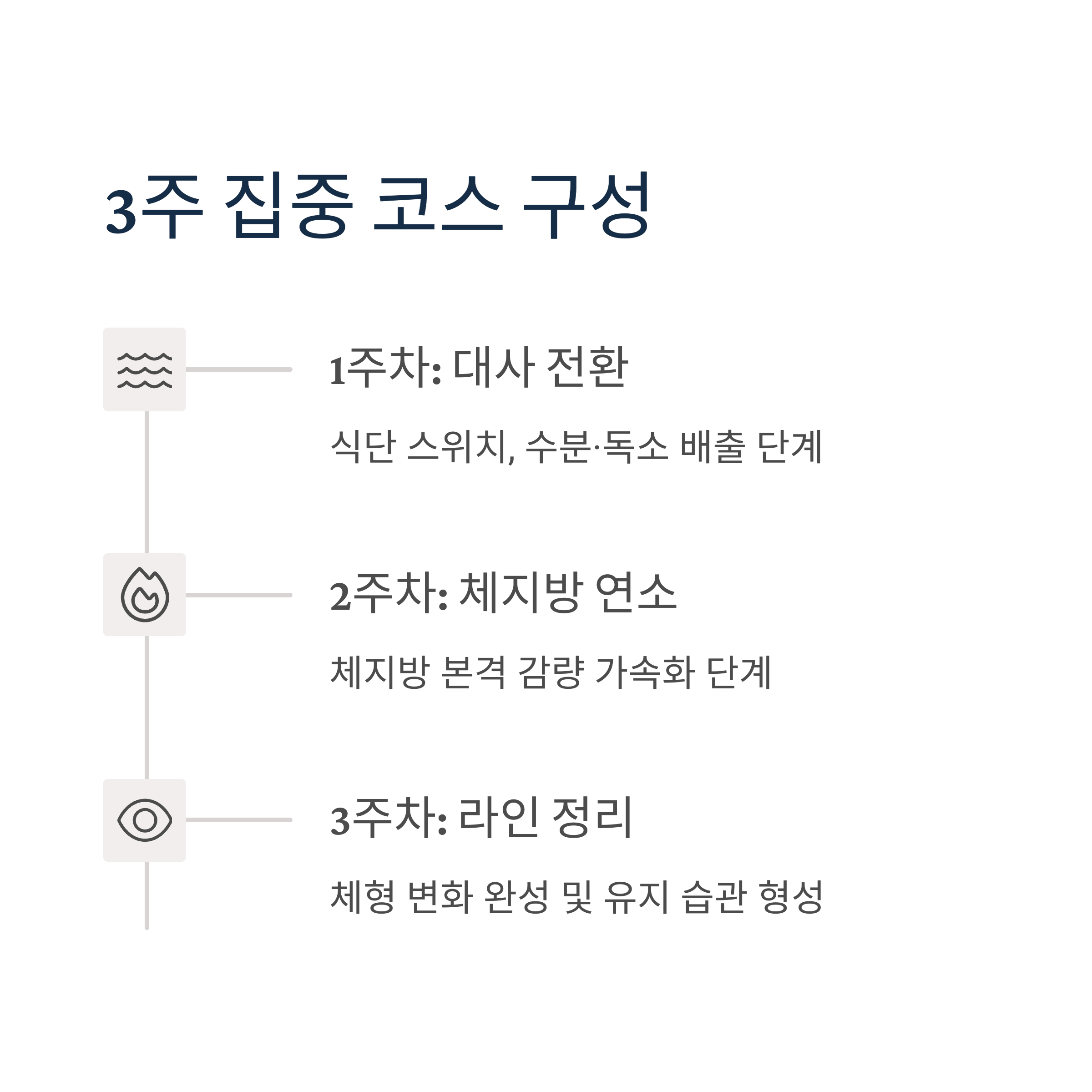 | 1주차 | 대사 전환, 식단 스위치 | 수분·독소 배출 |